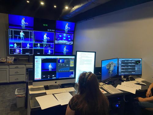 Our Audio Experts set, monitor, and continually adjust sound inputs and outputs for both the in-room sound and the broadcast audio. Training is intense, but very rewarding.
